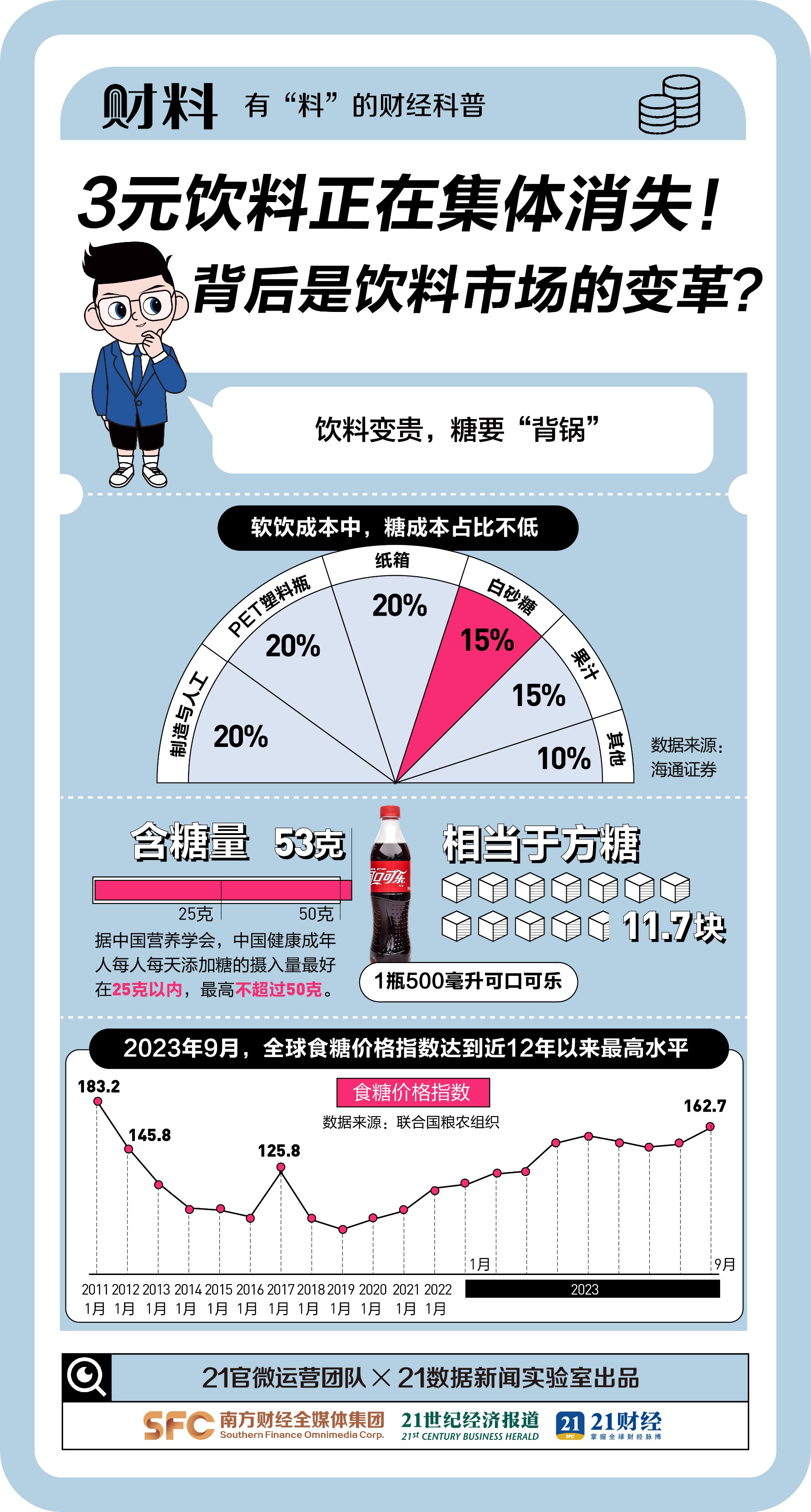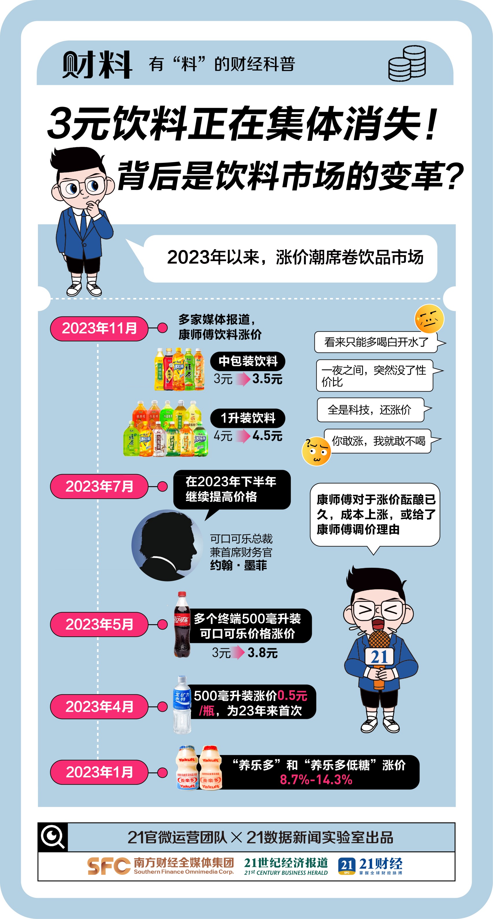 近日,“3元饮料集体消失”话题冲上热搜。2023年以来,多款知名饮料宣布涨价,