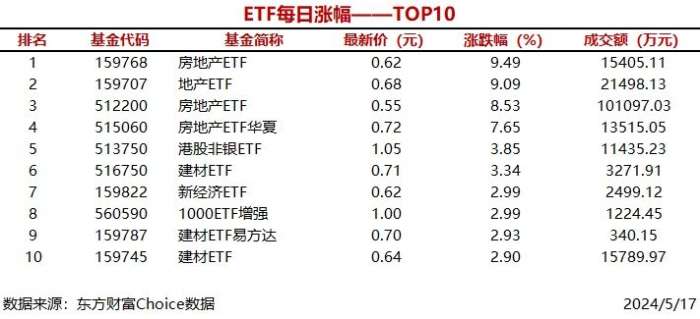 炒股配资资讯 2只ETF涨幅超过9% 房地产ETF上涨9.49%