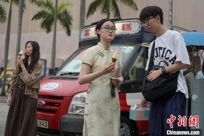 旅客在尖沙咀光顾雪糕车。中新网记者陈永诺摄
